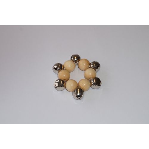 Glöckchenarmband (nicht nur) für Kinder mit 6 Holzkugeln aus unbehandeltem Buchenholz und 6 Glöckchen in heller, harmonischer Klangfarbe. Durchmesser des Armbands: 90mm.